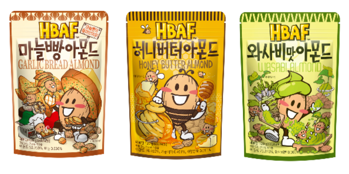 让产品成为主角,添上表情和背景,再藏入“亿”点点细节,插画便能赋予食品“生命”。在这些卡通形象里,你能看到食物的风味、原料,甚至制作过程和食用方式。从 HBAF 坚果到 SAJO 的 365.24 系列,韩国设计师 Jung Eun 以极富“人感”的画风,让包装讲述品牌个性,也让它在货架上成为最特别的存在。