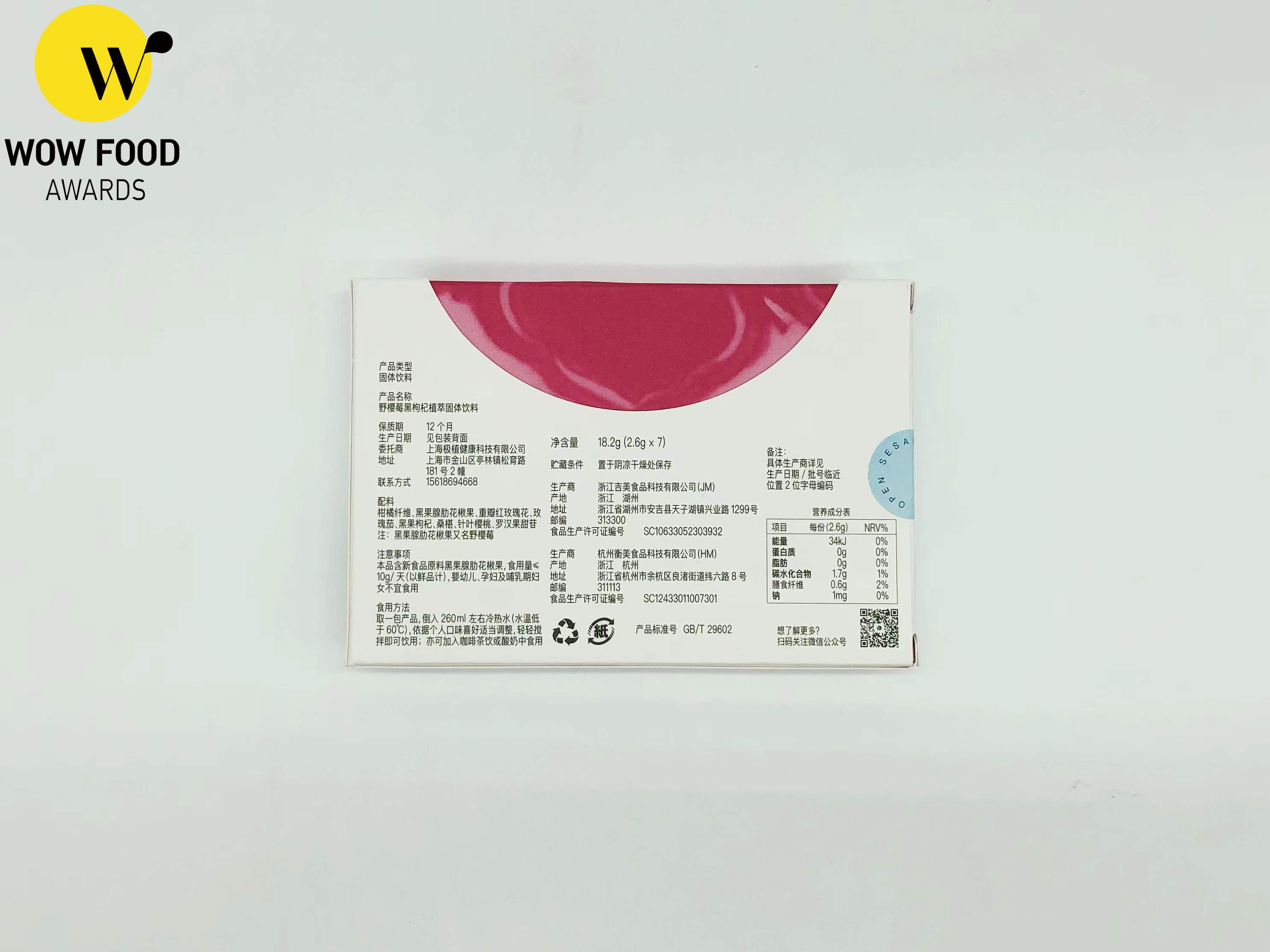 This GLOWSHOT comes from the GENBEN Oriental plant extraction health drink series. The product is scientifically extracted and the 6 kinds of strictly traceable berry essence (such as aronia, black wolfberry, Acerola cherry, etc.) are condensed into a small bag, which is portable and suitable to melt with all temperatures instantly, instantly forming a cup of water rich in anthocyanins, vitamin C, dietary fiber and other nutrients with the light and sweet taste. In order to ensure the absolute safety of users' food, the raw material suppliers we cooperate with have comprehensive qualifications and complete raw material data; the formula is submitted to the third party for inspection. Meanwhile, it adopts a modern production system and has100000-level clean production workshops covering 12000 square meters. In addition, it has passed the key control points of HACCP system, quality prevention and control at all levels as well as the international authoritative food safety system certification. We have some certificates such as GMP, ISO9001, ISO22000, fscc22000, HACCP and other system certification certified by SGS. Our products mainly focus on urban beauties (continueyan, busy working women, fitness people, vegetarians and long-term healthcare product users). We boldly innovate in brand vision and packaging ideas, adopt contemporary fashion beauty design style, deeply think about the concept of sustainable environmentally friendly in packaging material selection and concept, and truly achieve a product that is just as friendly to humans and the earth.