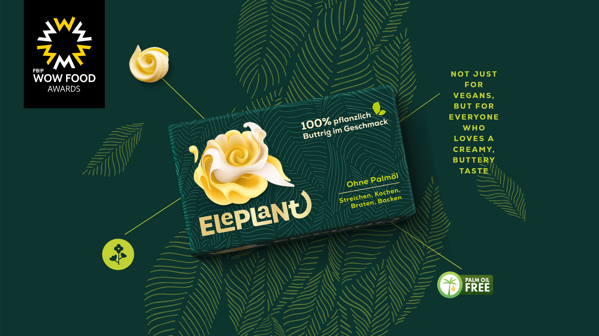 After months of development, we did it - we created Eleplant. A new, 100% plant-based butter alternative, with a particularly full-bodied flavor. Thanks to the unique natural recipe of coconut fat, rapeseed oil, cocoa fat and creamy oat drink, Eleplant is perfect for cooking, frying, deep-frying, baking, glazing and tastes great on bread. The introduction of Eleplant satisfies consumers' various demands for deliciousness, health, and environmental friendliness.