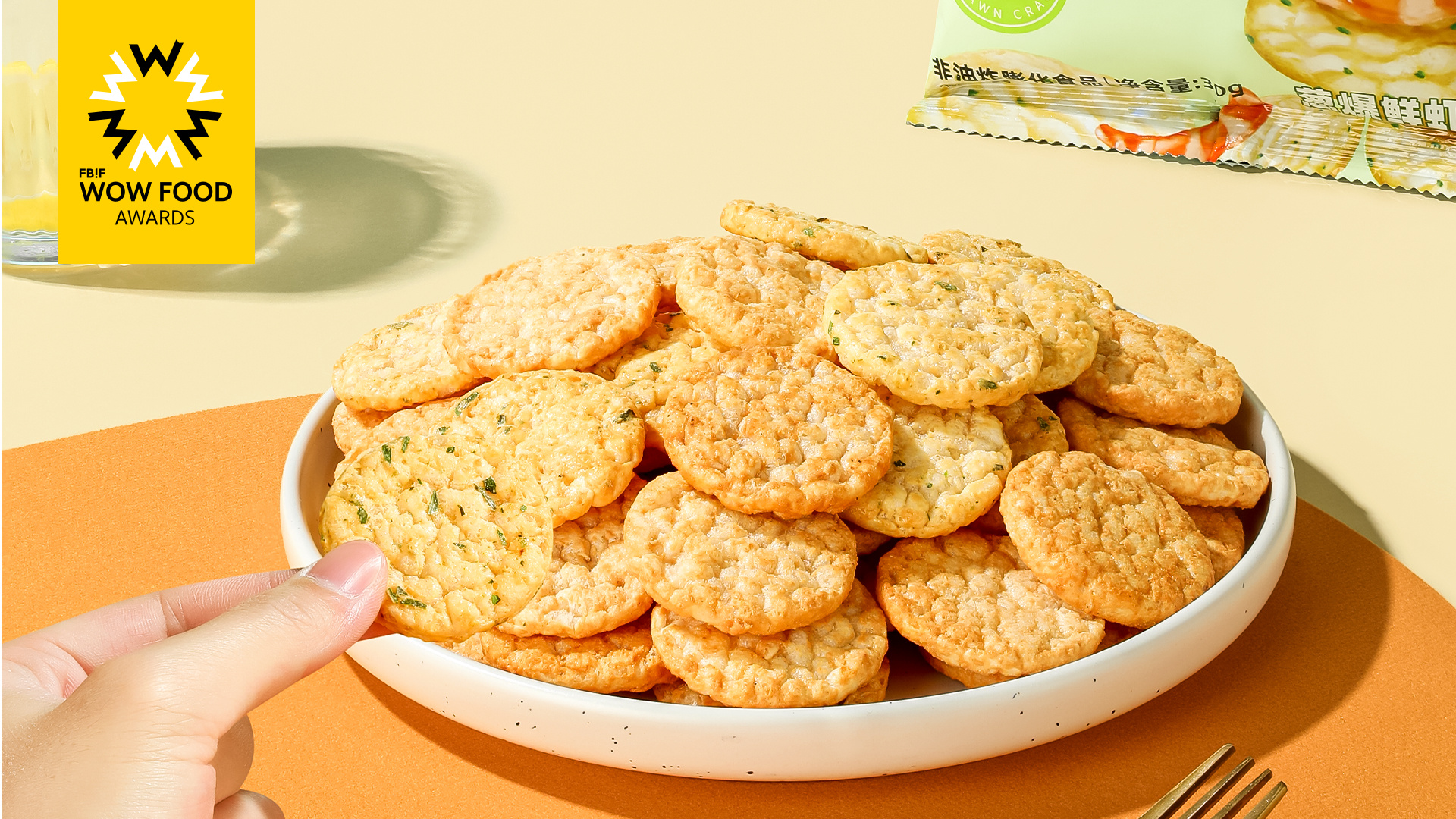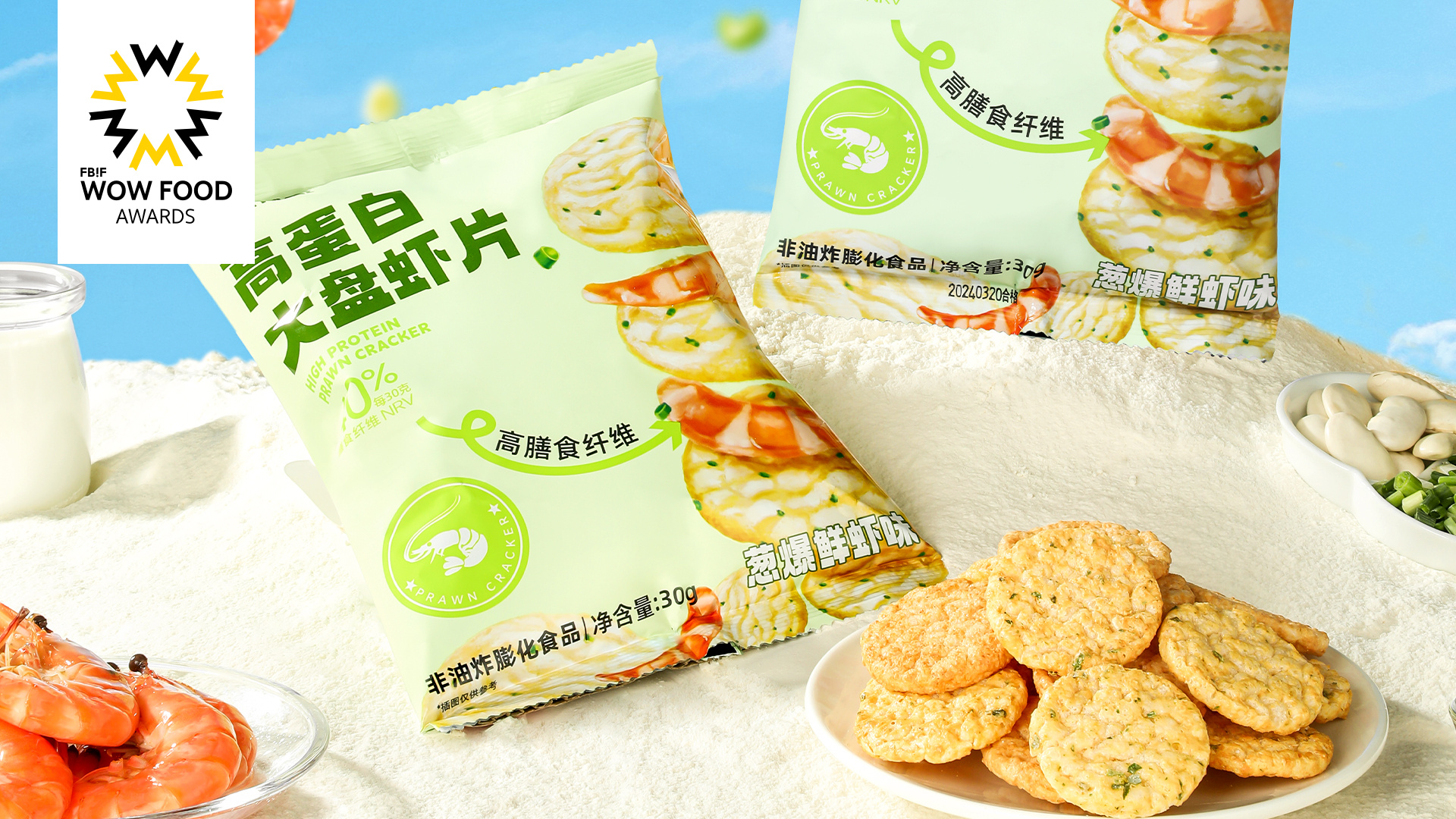New-Style Chips: The Geben Health™High-Protein Shrimp Chips are made with a healthy whole wheat and coarse grain formula and authentically infused with shrimp powder. Using a non-fried, oil-free baking process, these chips not only meet national standards for high protein, high fiber, and zero trans fats but also exclude sucrose seasoning, truly achieving a balance of great taste and health. The 30g small packaging design helps control calorie intake, with each bag containing only around 101 calories. You can enjoy the crispy, crunchy flavor without worrying about excess calories. This product successfully offers a healthy, delicious, and portable new option in the puffed snack category.