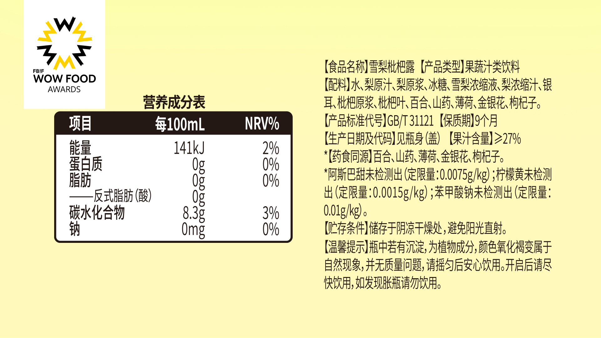 Pear loquat dew contains 5 kinds of medicinal and edible homologous raw materials, juice content ≥27%, ingredients clean, real materials, original taste to drink. Suitable for family dinner, office break, go out to play, camping and picnic all kinds of scenes, anytime and anywhere to nourish the body. It is suitable for breakfast, afternoon tea, and late night snacks.
