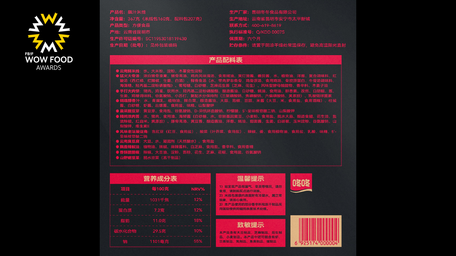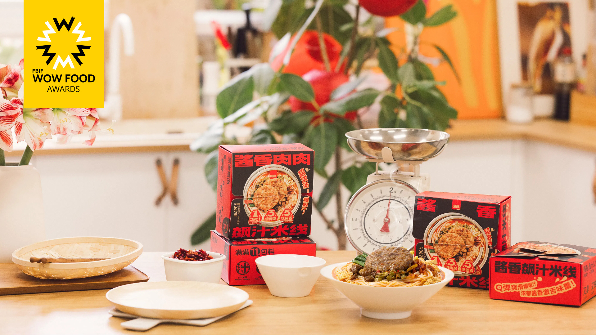 In terms of naming, we applied the formula of "New Flavor Perception + Value Extraction + Differentiated Selling Points", and named the new product "Jiàngxiāng Ròuròu Biāozhī Mǐxiàn". For the outer packaging, we created a theme of "Blooming Taste Buds", featuring a unique blooming box design, paired with fun on-screen subtitles inside the box. When unfolded, the outer box doubles as a tablecloth, combining functionality with a sense of ritual. In terms of color scheme, we abandoned traditional illustrations and opted for a high-end appetizing red combined with quality black. Real photos of the product directly stimulate the taste buds, and the prominent label of "1 Juicy Burst per Bite, 3 Types of Meat, 5 Sauce Aromas" delivers an instant sense of satisfaction.