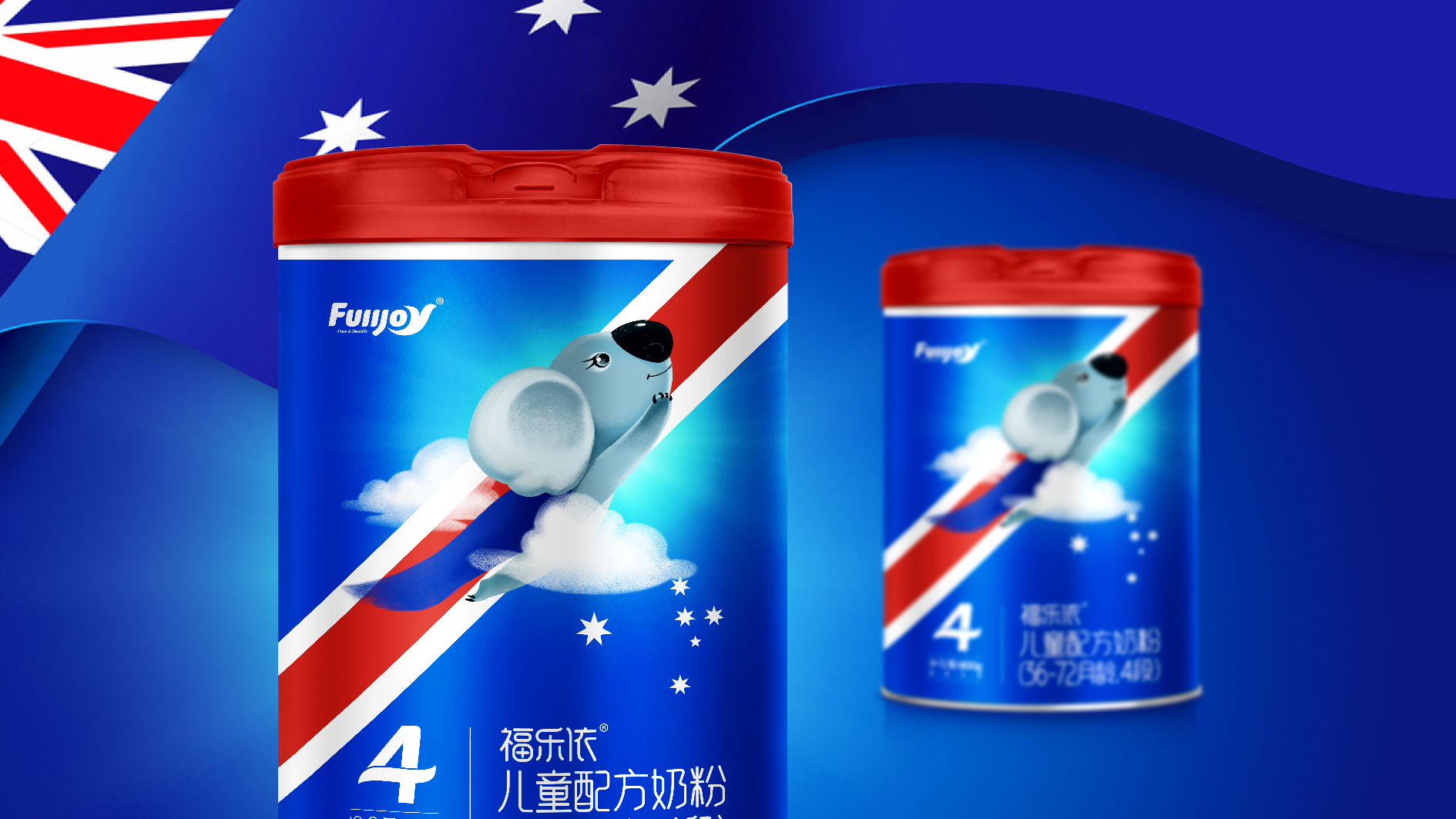 Fulljoy Nutrition LLC specializes in the development, manufacture and distribution of infant and maternal nutrition with its headquarters and R&D Center located in Australia. Its products boast “One Fulljoy for Seven Needs in Stages of Kids” and are originally produced and packaged in Australia. There is a geometric figure like the Chinese character “米” on the Australian National Flag, part of which similar to “7” reflects the signature of the brand – a symbol that clearly and accurately conveys its key messages; Combined the features of Koala, unique in Australia, and the traits of kids at different stages, a strong brand image of a vivid and cute koala is built to enable deep bond between the two images for improved customer satisfaction; Its packaging is on a dark blue and red background (featured on the Australian National Flag) to reflect its origin, which distinguishes it from its competitors who apply the color white to symbolise pureness, for an internationalized and premium look.