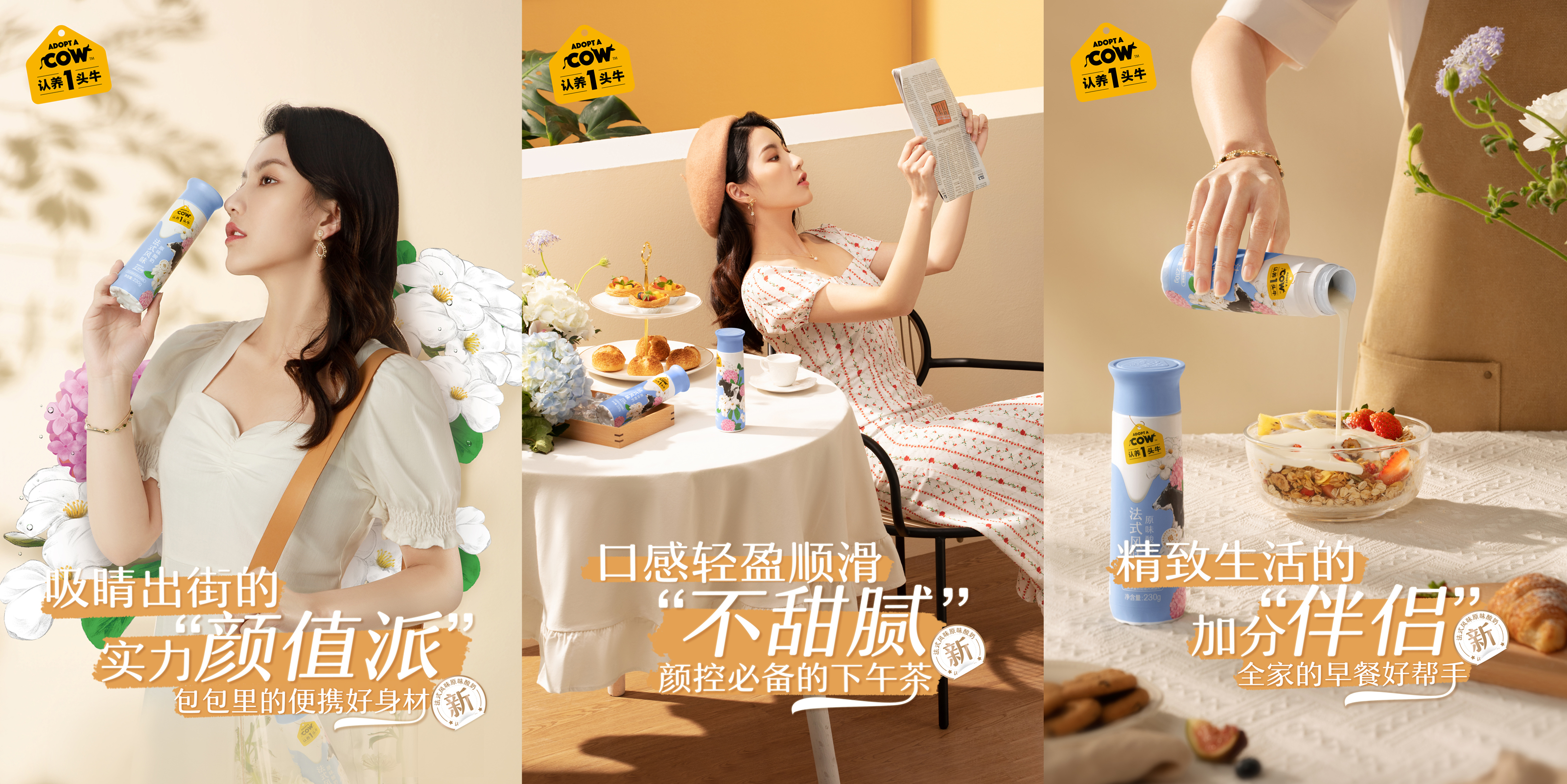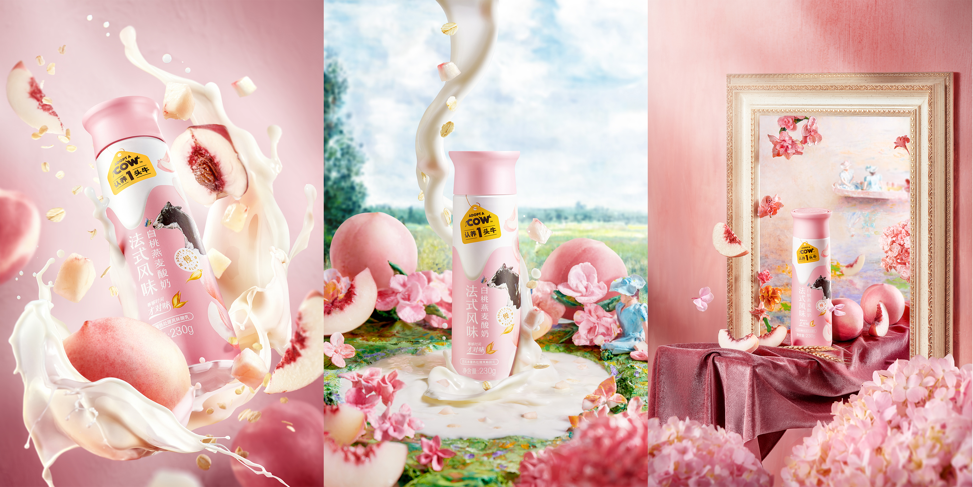 There are two flavors of French-style yogurt for adopting a cow. The peach vase is full of spring, with white peaches and oats added; the youth bottle is sweet and sour, and you can feel the natural flavor of the original flavor. This is a product that is customized for urban women from the inside out. In the product shape, we adopt an elegant and slender design. The diameter of the bottle body conforms to the conventional grip distance for women's comfort. The bottle cap is inspired by the shape of a lady's top hat; The picture of the bottle is inspired by the private garden of French artist Monet. Hydrangea and magnolia surround a cow jumping among the flowers, conveying a brilliant youth atmosphere. In the peach vase, the cow jumps from the garden into the world surrounded by white peaches, and full of oats floats. In the air, a butterfly symbolizes the natural aroma of the product; the design of French-style yogurt also takes into account the portability of the product. The PET bottle guarantees that you can screw on the bottle cap and take it away at any time if you can’t finish drinking it, which brings the girls easy and no burden. Product experience.