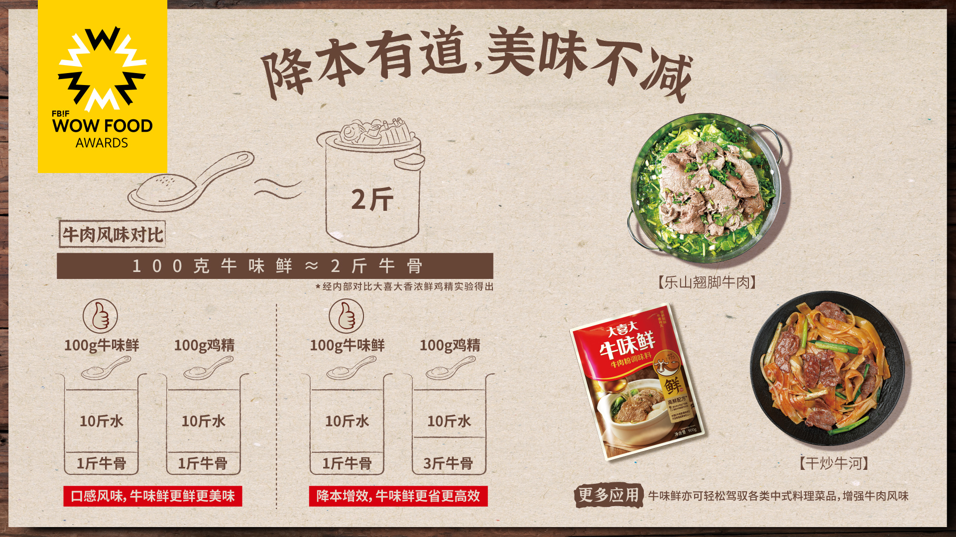 大喜大牛味鲜牛肉粉调味料聚焦于满足餐饮业降本增效的核心需求。我们通过内部多轮测试,明确了产品在底汤调制中的添加替代方案,确保其能够有效替代传统鸡精和部分其他调味品,实现降本增效的效果。基于这一优势,我们定期举办产品推广会,深入介绍大喜大牛味鲜牛肉粉在餐饮烹饪中的实际应用效果,帮助餐饮从业者更好地掌握使用技巧。
