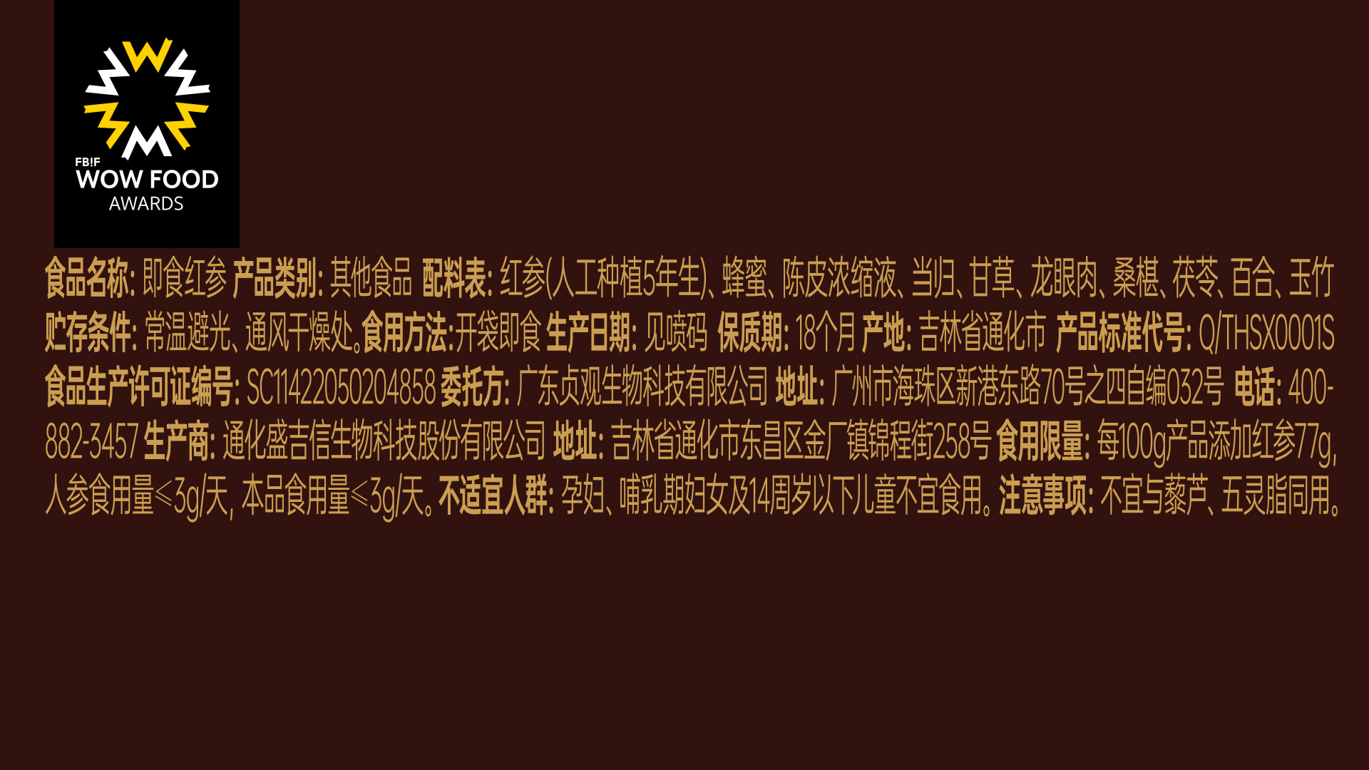 基于此,贞观首创即食组方红参片,2024年,我们推出了新的草本组方——贞观清润红参片。我们特别添加草本陈皮,并推荐先含后嚼的食用方式,既保留了人参的自然风味,又大幅提升了食用的便捷性和趣味性。消费者在享受温润甘甜口感的同时,也能高效吸收红参的滋补精华。