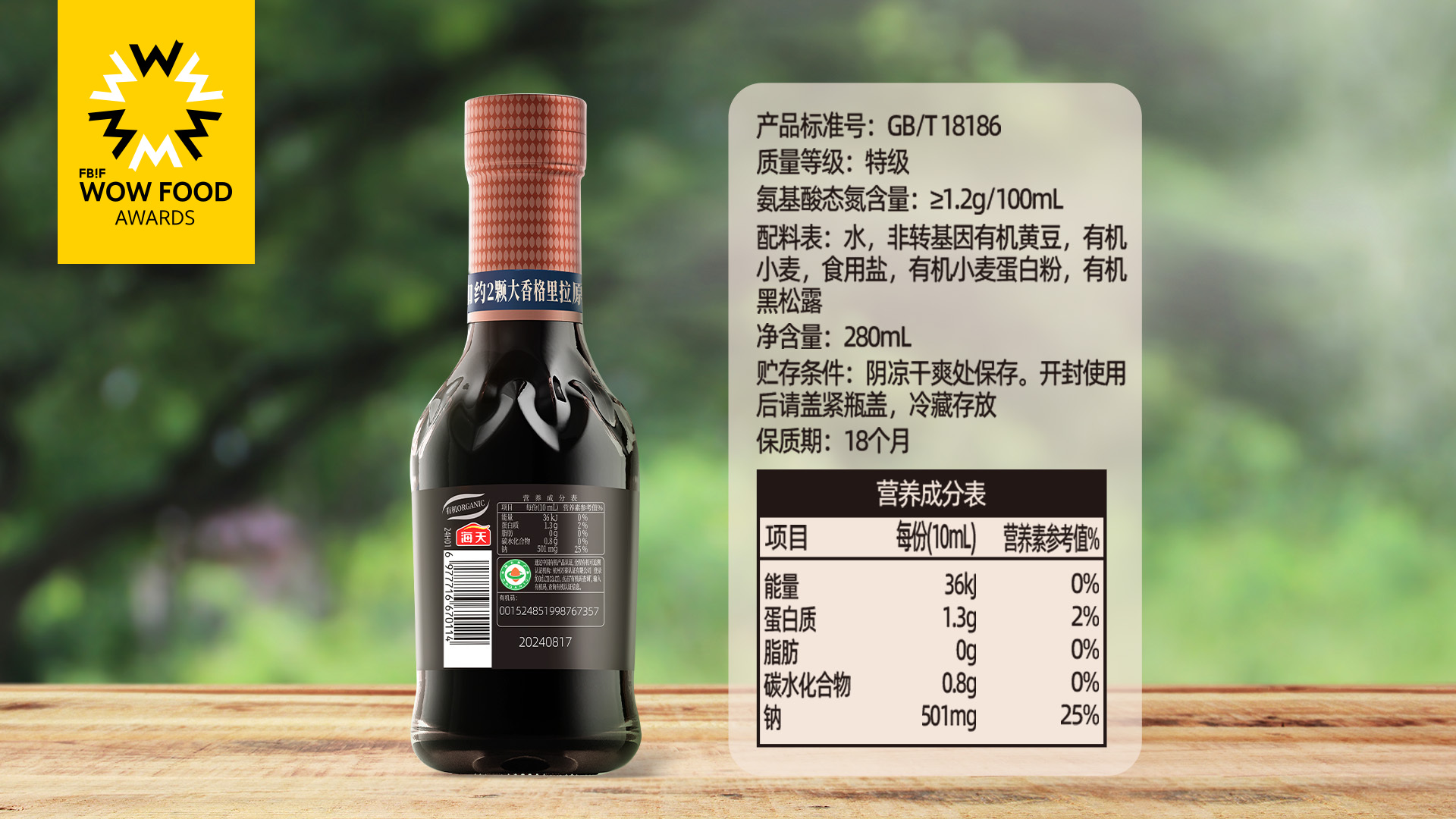 4、产品采用高盐稀态发酵工艺、酱油高鲜酿造等技术,氨基酸态氨含量≥1.2g/100mL,达到酿造酱油国家标准特级,整体口感纯正鲜美,酱香浓郁,风味香气俱佳。