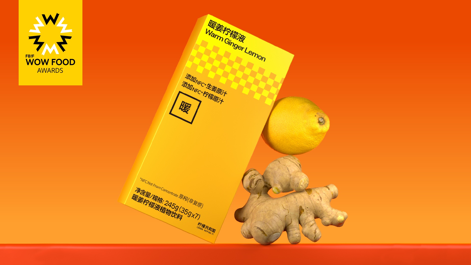 中国人对姜有天然的养生感,红糖姜茶概念最深,在女性消费群体占很大认知度。作为冷榨柠檬液首创,我们开始考虑将这一小瓶浓缩到柠檬液的袋子里的形式及它的风味呈现:首先一定要有姜的温暖与热辣,大部分的姜浓缩饮料,其中姜成分最高也不过百分之十几,只有轻微的姜味,会主动避开热辣的口味。我们选择了35%比例的NFC生姜原汁,喝下立马有温暖体感,从嘴巴一直暖到胃,与shot形式的产品体感基本一致,用户也可以选择添加不同比例的热水进行调饮,适合多种需求饮用。