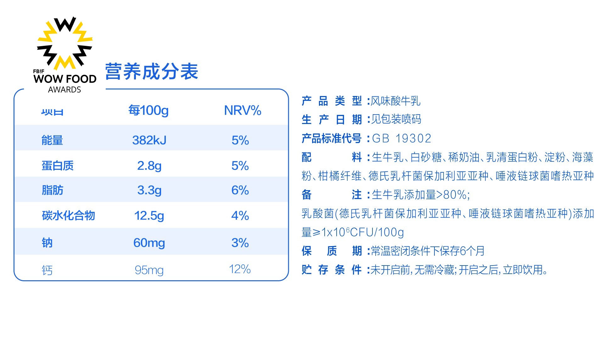 口感升级:解决了常温酸奶粉感重、易糊口的口感问题,使产品细腻、顺滑,饮用体验媲美低温酸奶,在天然健康的同时兼顾美味体验。