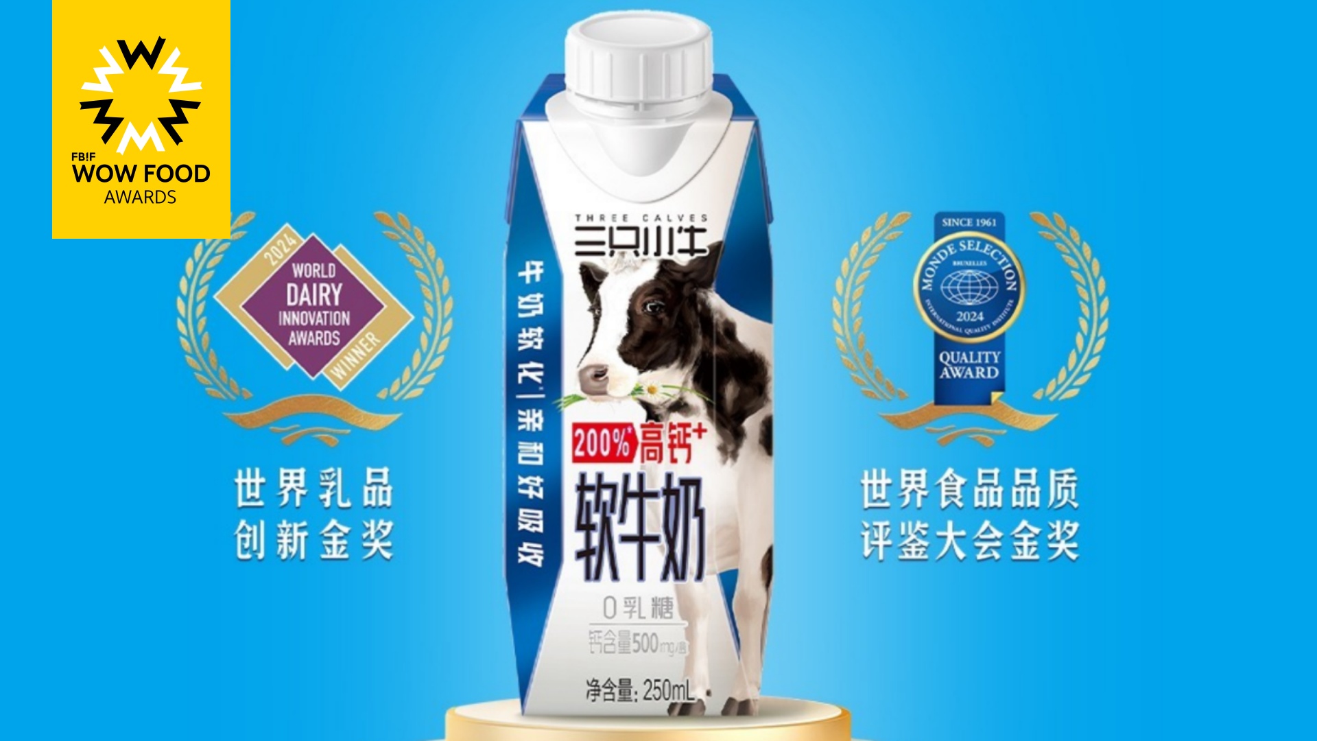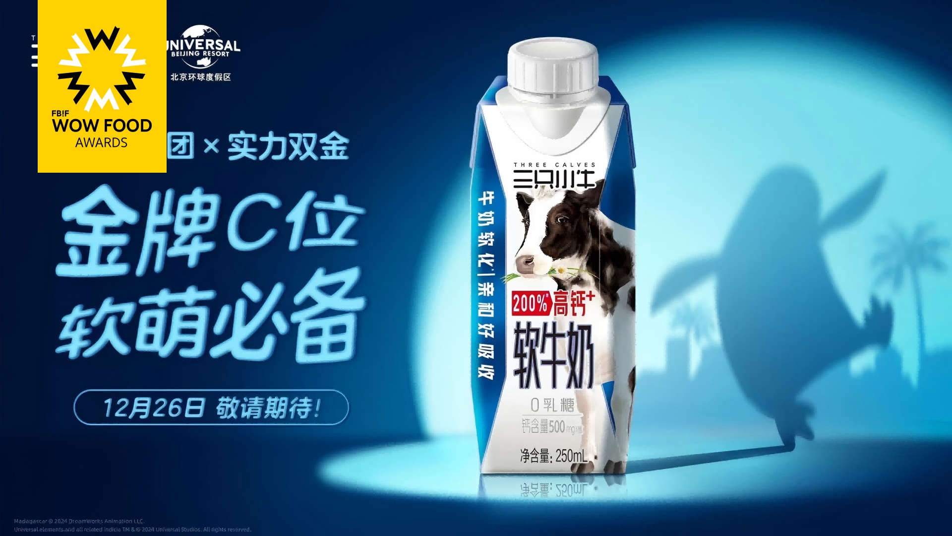 现代牧业三只小牛高钙软牛奶,通过牛奶软化工艺将乳糖分解成半乳糖与葡萄糖,实现0乳糖,使牛奶营养细化好吸收,空腹也能喝,并且钙含量达到200mg/L。其目标人群是全生命周期的新一代家庭用户,特别是针对中国6亿乳糖不耐受或疑似乳糖不耐受人群和9亿多缺钙人群,让更多乳糖不耐受的人群能够摄入足够的优质奶钙。