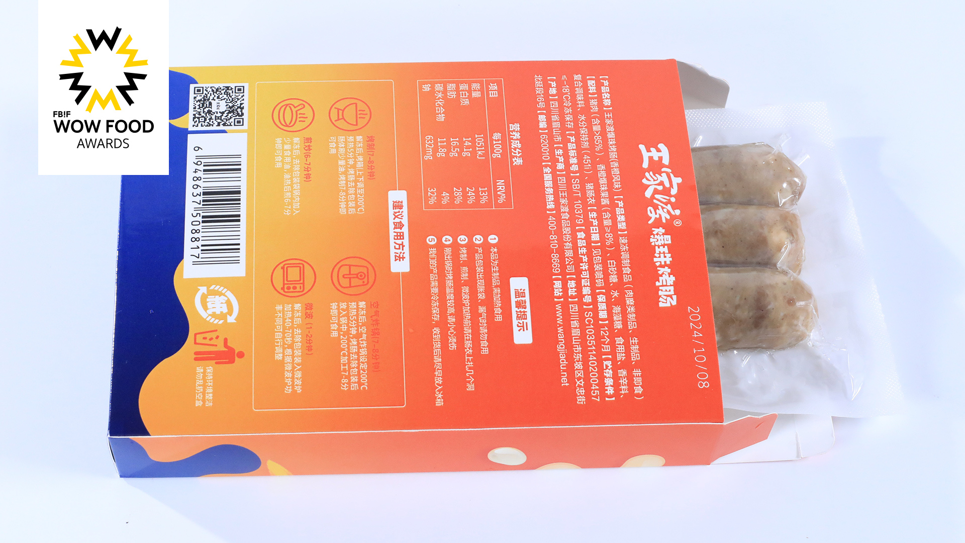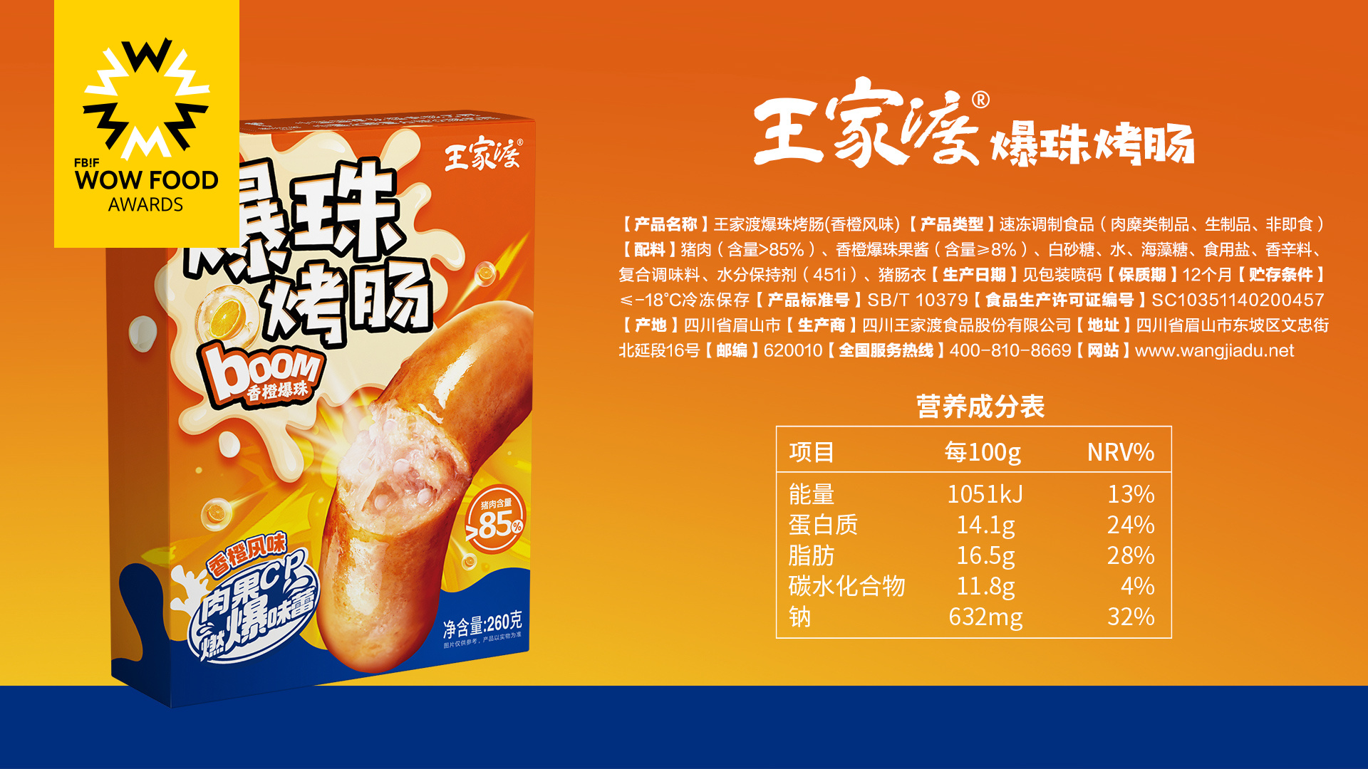 3、甄选高品质优质猪肉原料,搭配优质香橙爆珠,果香清爽,表皮Q弹香甜,内芯软糯,浓郁香气,让您拥有爆浆的美味体验,用好肉做好肠,安心肉源可追溯,肉含量>85%,甄选猪肠衣,锁住汁水,锁鲜耐烤,口感弹脆有嚼劲儿,营养高蛋白,早餐好选择,每14.1g/100g
