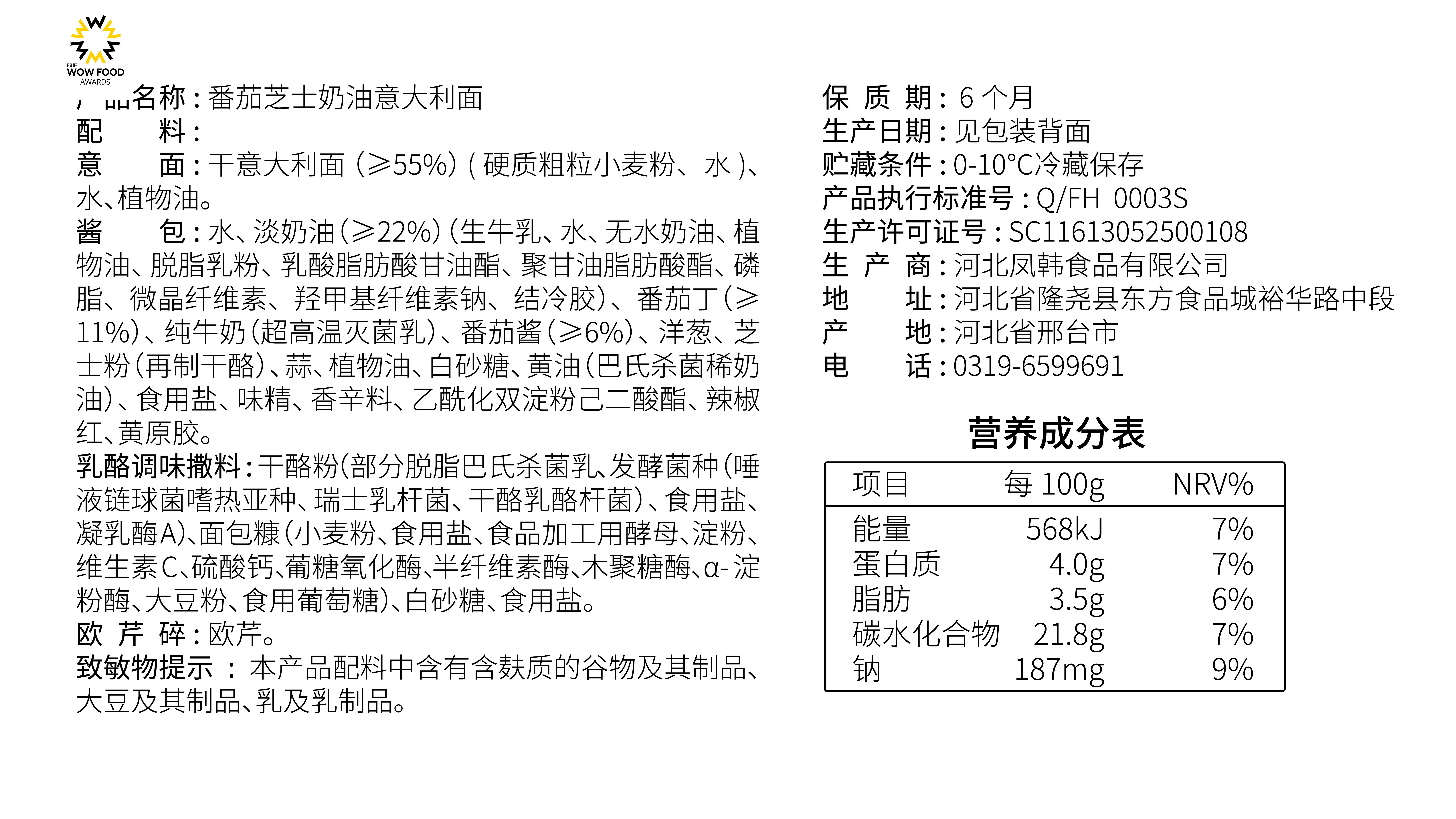 我们采用无酸保鲜技术,坚持传统意式烹饪工艺,结合现代人的口味需求,为您呈现出一道色香味俱佳、营养丰富的佳肴。意大利进口杜兰小麦意面,高蛋白、高饱腹、高筋度、有营养,免煮熟制,2分钟快享,劲道、耐嚼、更易挂酱。浓郁番茄、奶香芝士搭配奶油点睛之笔,一口下去,多巴胺爆棚,还原餐厅现煮口感。番茄芝士的结合是这款产品的亮点之处,满足每个女生的少女心,一口下去,整个人都仿佛沉浸在这美妙的味道里。无论是家庭聚餐还是朋友聚会,这款番茄芝士奶油意大利面都将是您餐桌上的绝佳选择。