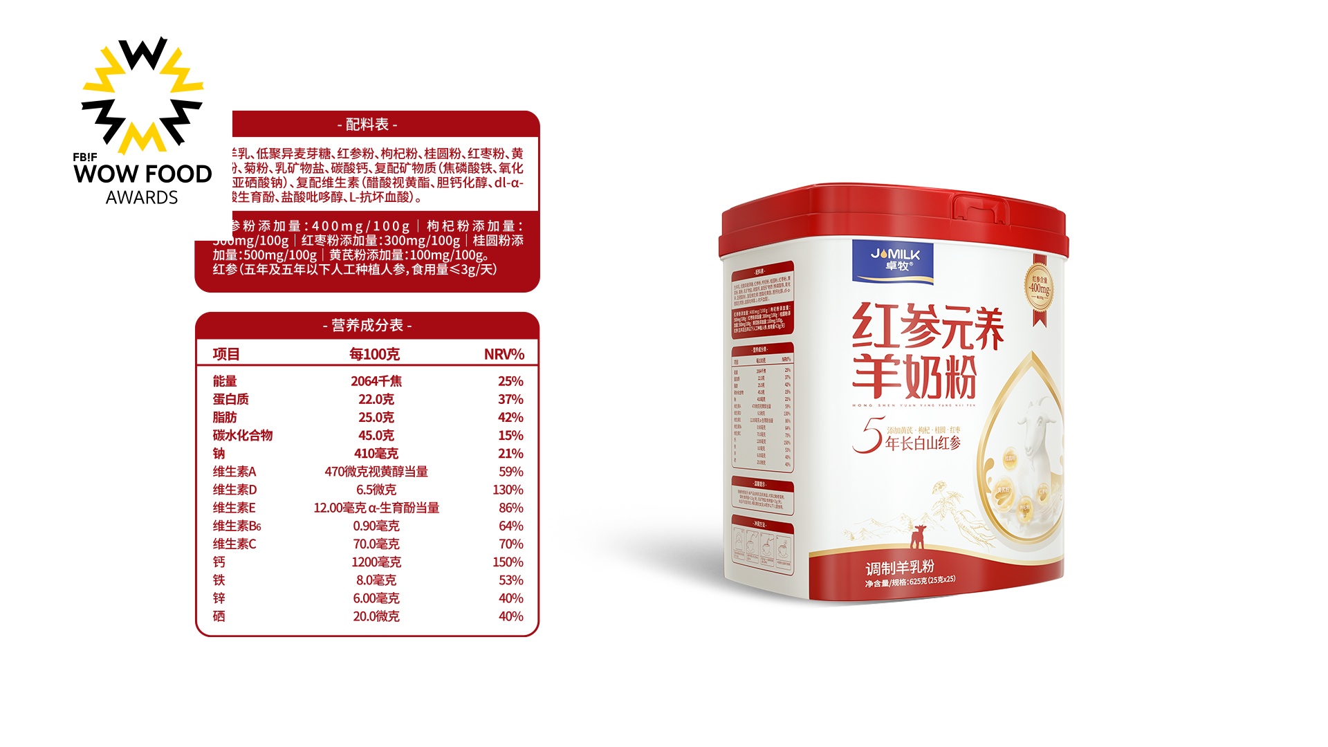 在国内“药食同源”的认知背景下,“重养生、轻滋补” 的理念蔚然成风,尤其是在快节奏、高压力的现代生活模式下,大众的健康意识不断觉醒与深化。基于广泛的市场需求,卓牧研发出针对女性养颜滋补的「红参元养羊奶粉」,淬炼红参精华,温和滋养身心,适应广大女性的养生需求。