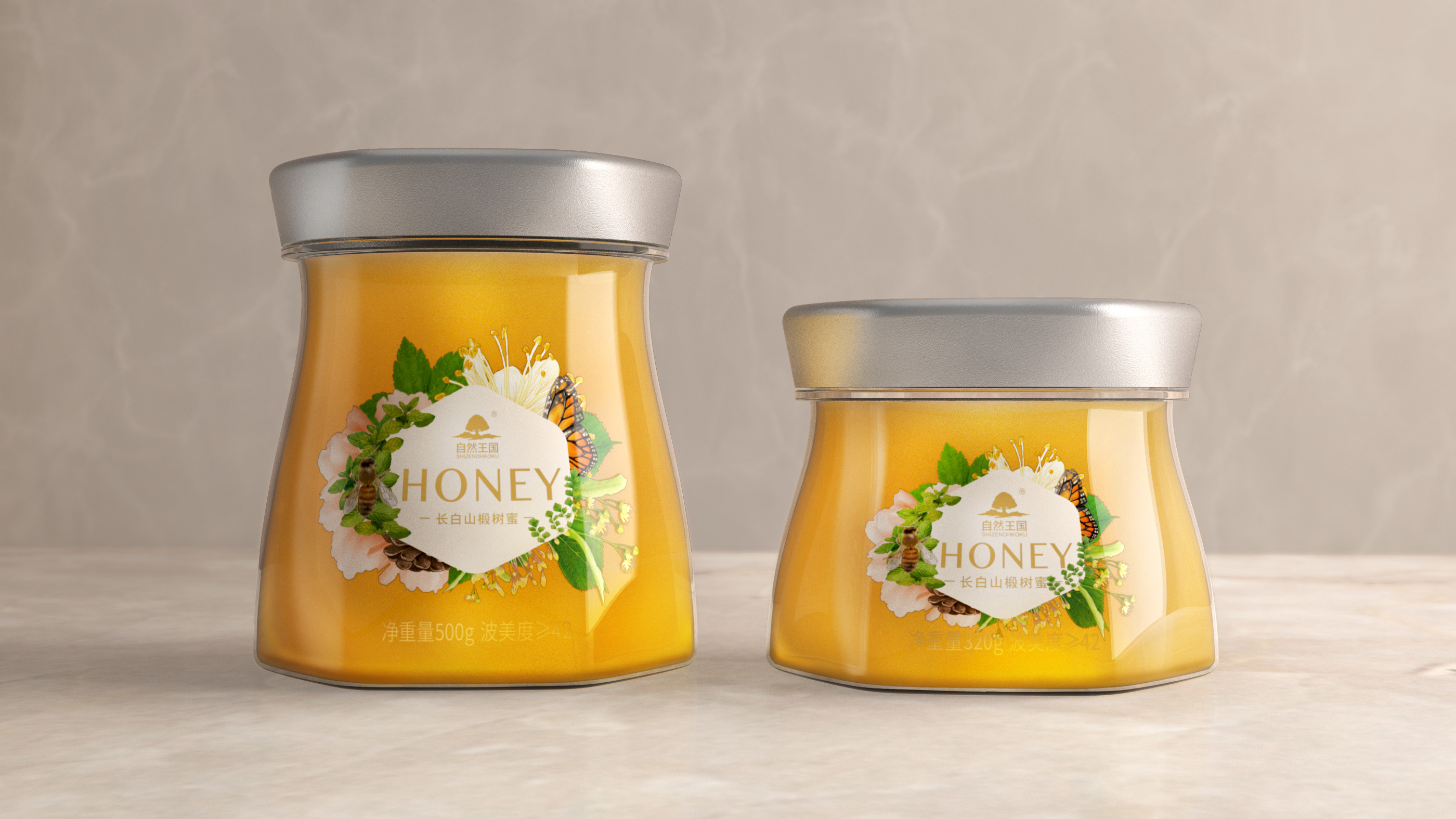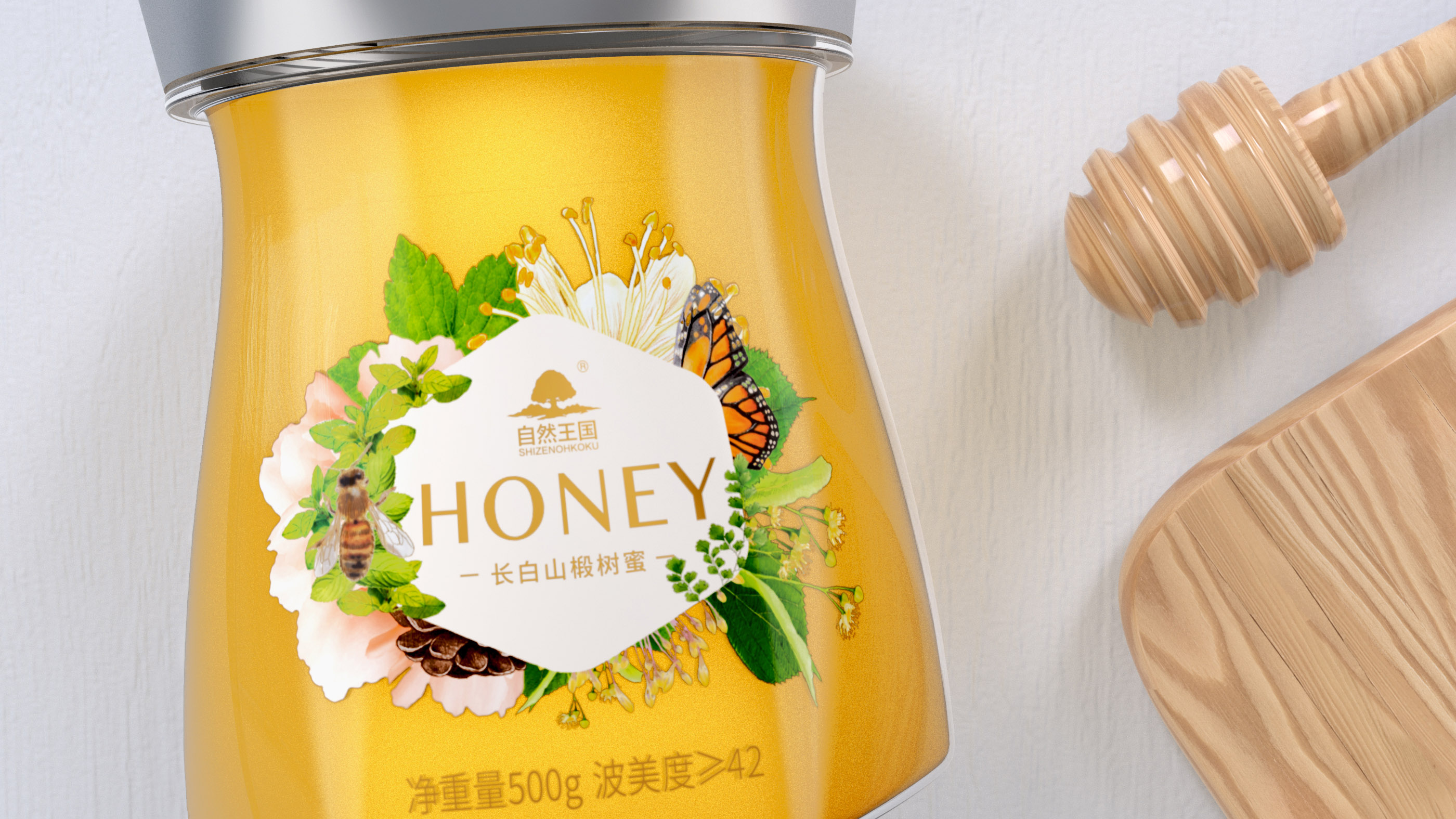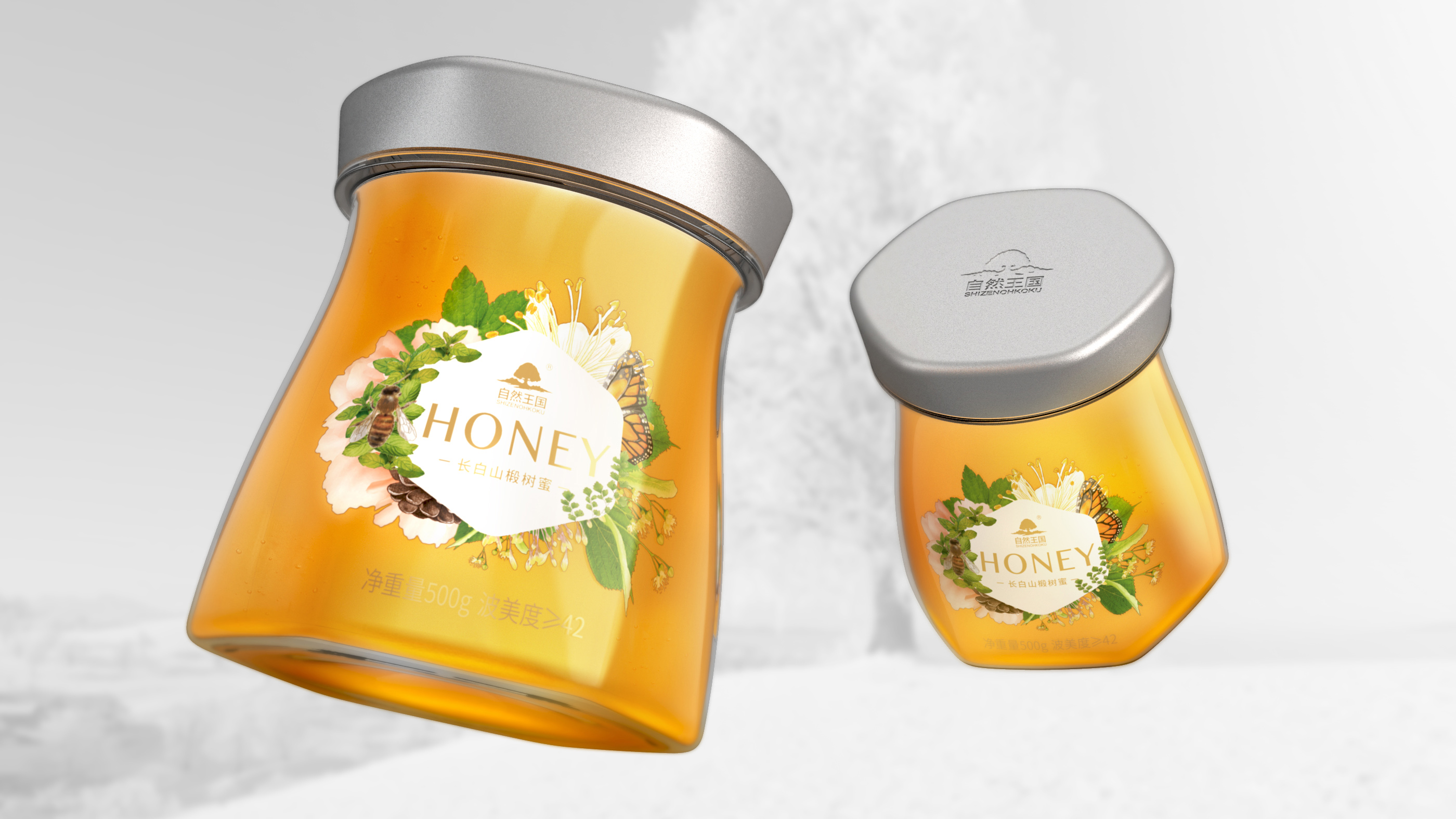 该椴树蜜产品来源于长白山,位于无人涉足的自然保护区内,植物生长在拥有更多矿物质,富含更多微量元素的火山土中,绝对的无污染,无农药残留。基于此背景,该品牌希望产品能够通过包装设计向消费者传达品牌特性,提高产品的市场认知度。
