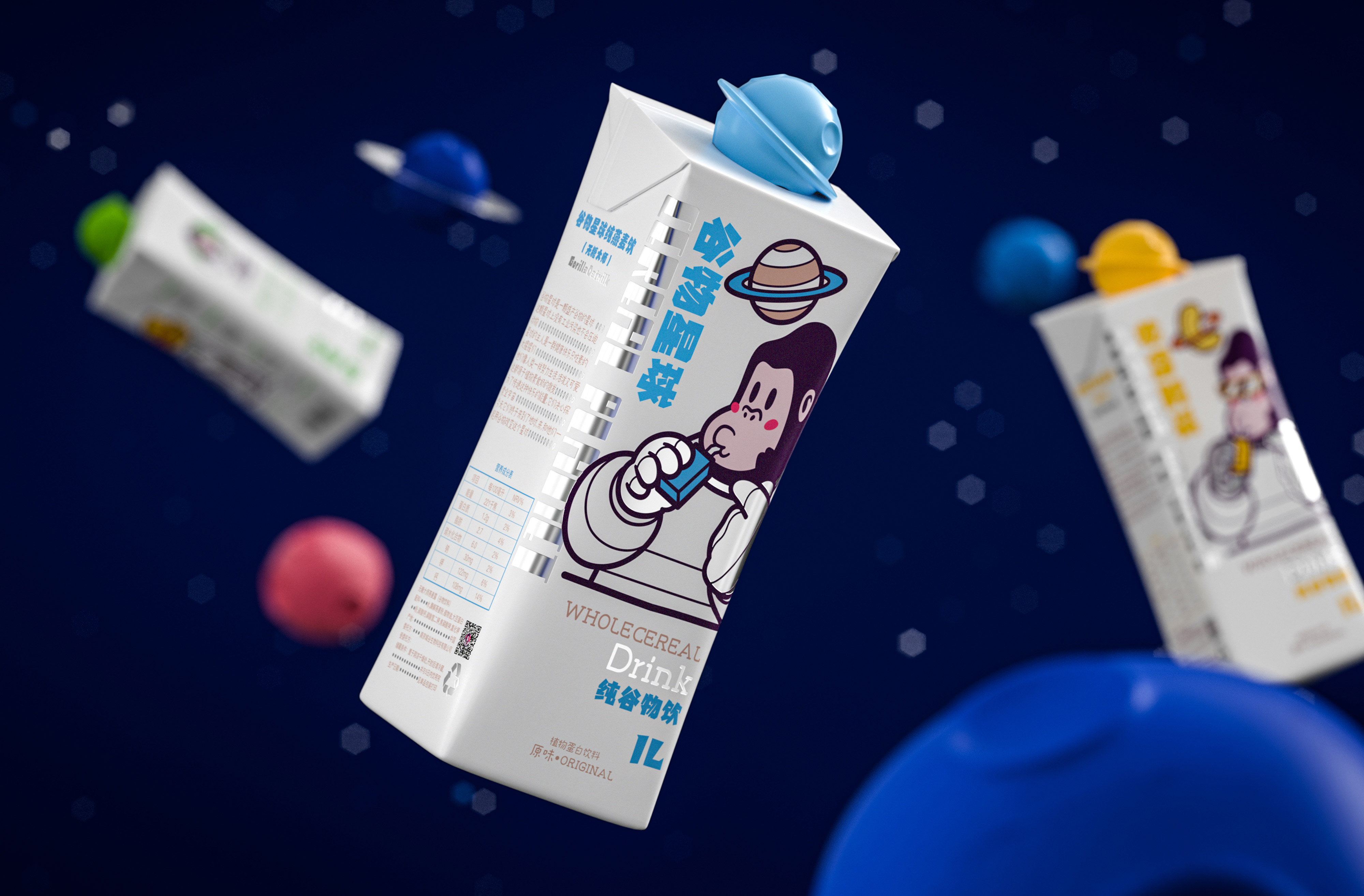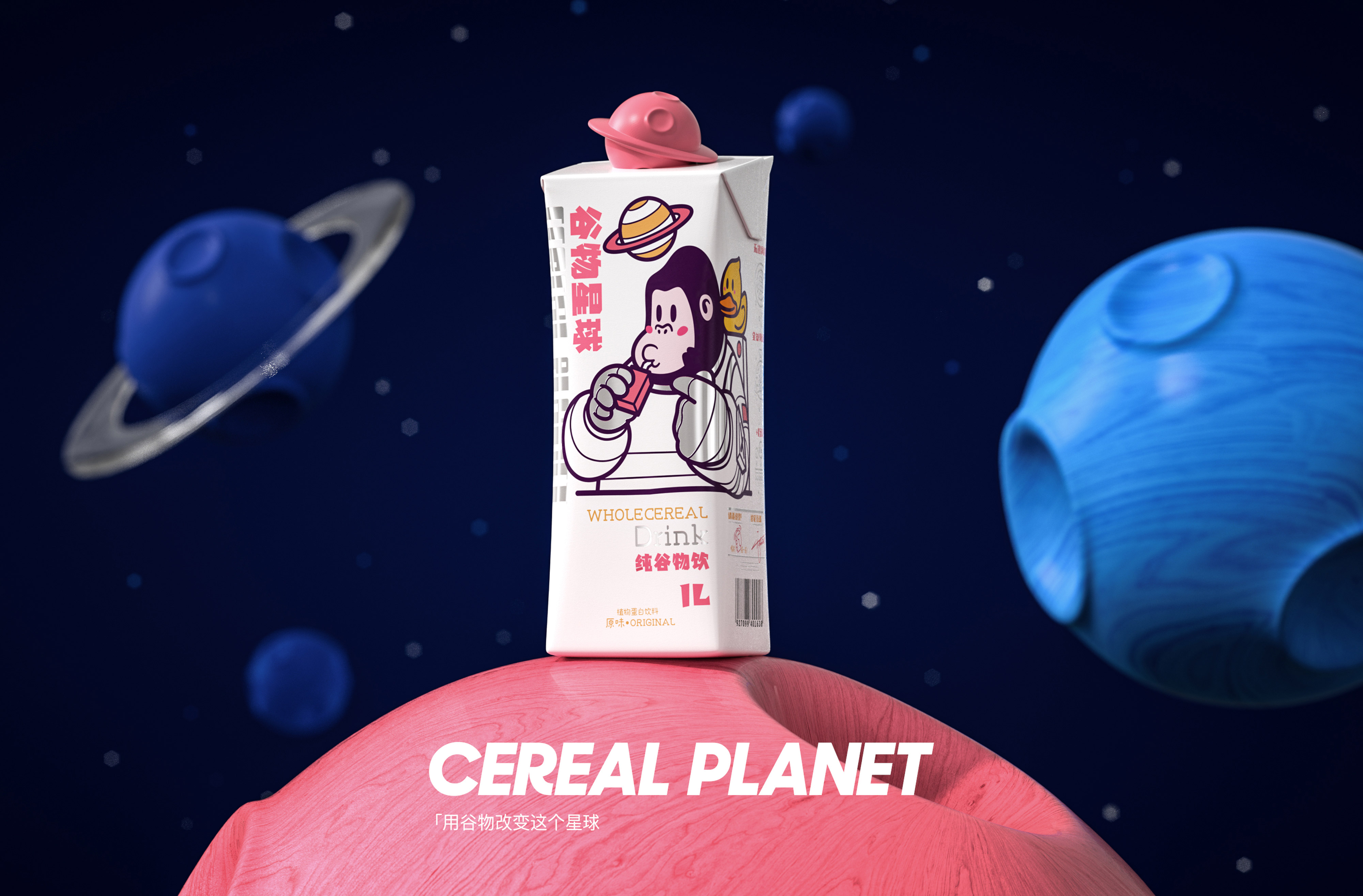 设计背景与理念:“好玩”、 “可拆卸” 、“可通用”、 “可持续”是本次包装设计的初衷,设计亮点「星球盖」符合市场上普通瓶盖的规格尺寸可作为瓶盖的替换品,也可作为长久陪伴的玩具满足日常需求,更契合可持续理念这与谷物星球品牌坚持的健康与环保理念相契合我们也鼓励消费者在收到「星球盖」的时候解锁更多富有创意的使用方法,让星球的故事延续下去。