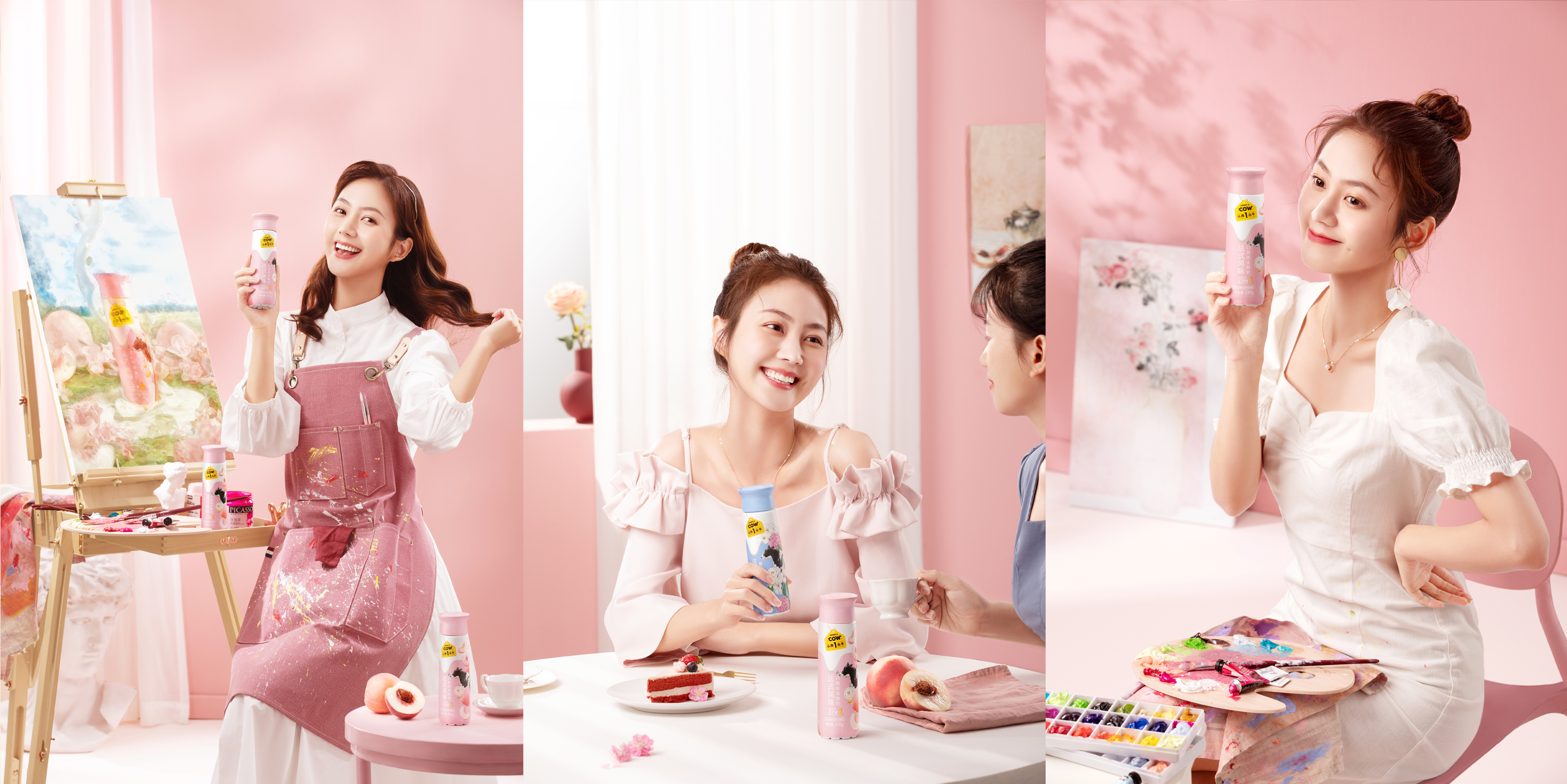 认养一头牛法式风味酸奶共有两种口味,桃花瓶春意盎然,特别添加白桃与燕麦;青春瓶酸甜适宜,感受原味的自然。这是一款由内而外为都市女性定制的产品,产品造型上,我们采用了优雅修长的外观设计,瓶身直径符合女性舒适的常规握距,瓶盖从女士礼帽的造型获得灵感;青春瓶画面灵感源于法国艺术家莫奈的私人花园,绣球和玉兰围绕着一只在花丛中跳跃的奶牛,传达烂漫的青春氛围,桃花瓶中奶牛从花园跃入白桃环绕的世界,饱满的燕麦浮动在空气中,一朵蝴蝶寓意了产品自然的香气;法式风味酸奶的设计还考虑了产品的便携性,PET瓶保障了无法喝完可随时拧上瓶盖带走,带给女生们轻松无负担的产品体验。